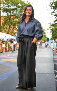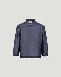 MARIGOLD - Baptiste - Chambray puff-sleeve shirt dark blue